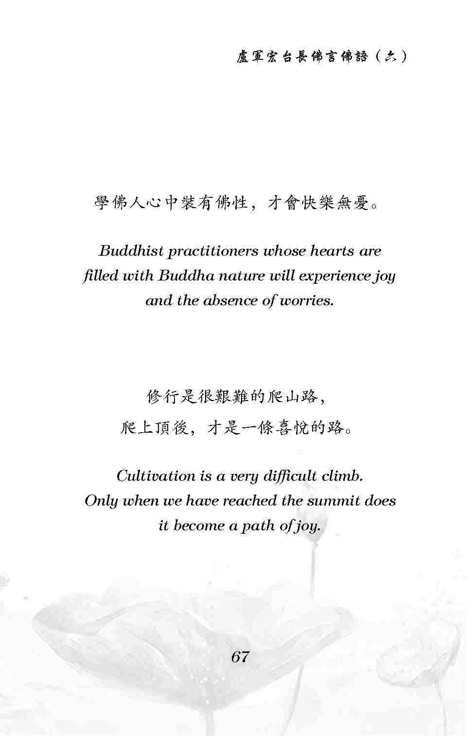 Buddhist practitioners whose hearts are filled with Buddha nature will experience joy and the absence of worries.